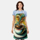 A vibrant, stylized illustration of a Cuban coffee cup with colourful swirls and bubbles bursting from the surface, set against a bright, radiating background that enhances the lively energy.