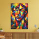 Transform your living space with this striking cubist-inspired canvas print by ZR21designs, featuring a fragmented human face built from bold geometric shapes and vibrant, multi-colored textures.