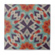 This ceramic tile boasts a captivating geometric design that echoes the intricate artistry of traditional Aztec or Mayan patterns. The graphic style is characterized by its symmetrical and angular shapes, creating a bold and dynamic visual appeal. The rich colour palette features vibrant hues of red, blue, and teal, which stand out against the textured background, suggesting an aged or distressed look that adds depth and authenticity to the design.