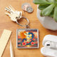 Vibrant Dragon and Phoenix Artwork with Flower Keychain