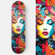 Roll into the urban vibe with our Vibrant Edgy Colourful Street Art Inspired skateboard, featuring a striking woman's face intertwined with dynamic shapes that pop off the deck. Add a personal touch with customizable text, and let your ride be a unique expression of style. This is another 100% Snuggle Hamster Designs.
