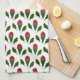 Vibrant Elegant Red Roses & Green Holly Pattern Kitchen Towel