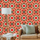 This vibrant wallpaper boasts an intricate geometric pattern that draws inspiration from traditional African textiles. Bold and striking, the colour palette features red, black and cream hues. The central motif showcases an eight-pointed star in rich red, accented with black details. This star radiates from a cream square, creating a mesmerizing focal point. Surrounding the star, alternating bands of smaller geometric elements (also in black and cream) form a dynamic tessellation. These angular shapes evoke movement and rhythm.