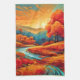 Vibrant Fall River Scene Kitchen Towel