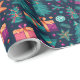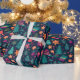 A colourful array of Christmas-themed wrapping paper features cheerful trees, stars, and gifts, capturing the joyful spirit of the holiday season with intricate patterns and bright colours.