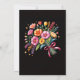 A vibrant, stylized floral bouquet illustration featuring a mix of colourful flowers in shades of pink, orange, yellow, and red. The flowers are arranged in a lively, whimsical composition, tied together with a pink satin ribbon. Golden stars are sprinkled around the bouquet, adding a magical touch. Set against a dramatic black background, this eye-catching design is perfect for wedding invitations, romantic stationery, or celebration-themed digital art.