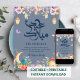 Celebrate Eid with this colorful and whimsical card featuring butterflies, a blue mosque dome, and a garden of wildflowers. Joyful and eye-catching.