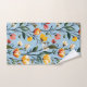 A colourful floral pattern featuring hand-painted flowers in warm tones of yellow, orange, red, and white against a soft blue background. The elegant botanical composition adds a fresh and artistic touch, perfect for textiles, wallpapers, and design projects.