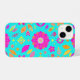 This vibrant floral pattern bursts with vivid pink, orange, and yellow hues, set against a fresh turquoise background. Ideal for creating trendy and stylish phone cases, this colourful design features a playful mix of flowers and geometric shapes