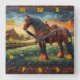 Vibrant Horse in Colourful Farm Scene Square Wall Clock