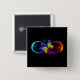 Vibrant infinity with rainbow butterfly on black 2 inch square button
