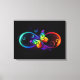 Vibrant infinity with rainbow butterfly on black canvas print