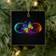 Vibrant infinity with rainbow butterfly on black ceramic ornament