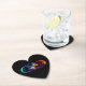 Vibrant infinity with rainbow butterfly on black paper coaster