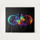 Vibrant infinity with rainbow butterfly on black tapestry