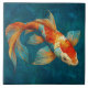 A vivid and detailed artistic rendering of a koi fish, showcasing its intricate scales and bold colours against a richly textured blue background.