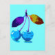 Vibrant light blue cherries postcard