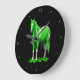 Vibrant Lime Green Dripping Wet Paint Horse Large Clock