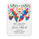 Vibrant and colorful Save The Date engagement magnet with a Mexican-inspired theme.