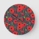Vibrant Modern Red Poppies Pattern Art Round Clock