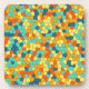 Vibrant mosaic pattern composed of various coloured shapes, primarily hexagons and polygons. The colours include bright shades of orange, yellow, turquoise, and blue, creating a lively and energetic visual effect.