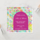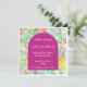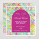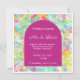 "Stand out with this vibrant wedding invitation featuring a lively multicolored background and a bold magenta arched centerpiece. Perfect for couples seeking a modern and colourful touch to their wedding stationery. Easily customizable for your special day."