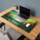 This creative desk mat features an illustration of quite colourful sunset, deep in the forest.