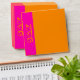 Disco vibes make a splash in the mailbox with this vibrant orange and hot pink envelope personalized with your monogram on the front and return address on the back flap. Bright and Colourful.