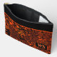 This vibrant cosmetic pouch features a bold abstract floral pattern in striking orange and black, bringing style and personality to your everyday routine.
