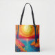 Carry the breathtaking beauty of the outdoors wherever you go with this stunning tote bag. The design features a highly stylized, vibrant landscape showcasing a glowing orange sunset, a peaceful reflective lake, and striking tree silhouettes. Whether you're heading to the farmer's market, the beach, or just running daily errands, this durable and aesthetic bag is the perfect accessory for nature lovers and wanderlust seekers.