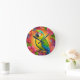 Colourful parrot with vivid plumage sits on a branch, accompanied by bright tropical flowers against a serene blue background, creating a vibrant and lively tropical theme.