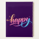 A cheerful and modern "happy" design featuring a beautiful flowing script with a vibrant pastel gradient of orange, pink, and blue. Decorative sparkles and dots add a touch of magic and positivity to this clean, uplifting artwork.