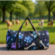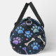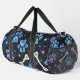 This stylish duffel bag features a vibrant purple and blue colourful design adorned with contrasting paw print patterns. It's a functional gear bag and travel accessory, perfect for any pet lover on the go.