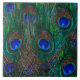 Vibrant Peacock Feathers Etching Style Decor Tile