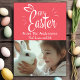 This pretty Easter card comes in a vibrant pink pastel background with the words "Happy Easter" in a fun decorative white script accented by a pair of bunny ears. Personalize by adding your favourite photo, family name(s) or custom text. The back features a complimentary Easter print in pastel blues, pinks and yellows.