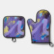 Vibrant Purple, Yellow, and Blue Abstract Art Oven Mitt & Pot Holder Set