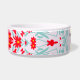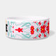 Add a touch of charm to your canine's style with this customizable red floral bowl. Featuring a vibrant mix of red flowers and a gold star, this food bowl is both fashionable and functional. Perfect for everyday use or as a thoughtful gift for dog lovers. Personalize it with your pet's name to make it truly one of a kind!