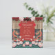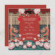 A vibrant red invitation card adorned with intricate Chinese-style designs. The card features elegant gold accents, including traditional motifs like clouds, floral patterns, and a bold central emblem symbolizing prosperity. The combination of red and gold exudes warmth and celebration, perfect for festive occasions or weddings.