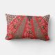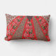 Vibrant red fabric featuring intricate floral and lumbar pillow