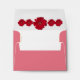 This A2 sized envelope is adorned with of a bold red Gerber daisy and digital art design over a red background colour. Two red Gerber daisies grace the three loop digital art on this envelope front. The theme is carried onto the back outside envelope flap and the flowers form a line across the inside flap. Click "Customize it!" to add text such as a return address. All design elements are customizable so you can remove or duplicate any. In customize you can also click "2 Choose your paper type and colour".