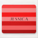 Mouse pad with a vibrant red monochrome striped pattern with personalized name print in the centre. Type your name in the template field to personalize it or leave it blank for a plain pattern design. Matching computing accessories available.