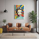 This artwork draws inspiration from the iconic pop art movement, characterized by its use of bright colours, commercial imagery, and a celebration of popular culture. The woman's confident expression and the vibrant explosion of colours around her make this piece a true statement of individuality and style. Whether you're a fan of retro designs or looking for something that pops in your interior, this print is sure to stand out.