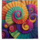 A collection of colourful spirals forms an intricate, textured design. The swirling patterns display a rich variety of hues and shapes.