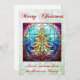 Bright and vibrant stained glass design of a multicolored Christmas tree in a red frame. With pale green glitter background and "Merry Christmas". You can change the customizable personal greeting at the bottom of the design to your own message.