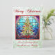 Vibrant Stained Glass Christmas Tree Green Glitter Holiday Card