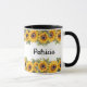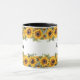 Personalized first name trendy modern sunflowers blooms two-tone mug on white background. This modern mug makes a perfect birthday gift or present for any special occasion. Custom the mug with a name for a unique touch, or as a treat yourself.