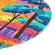 A captivating illustration of a vibrant cityscape bathed in the warm glow of a setting sun, framed by lush greenery and a winding path (This Design Made With AI). Place Order Today and Embrace the Joy of Shopping!