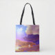 Carry the glow of golden hour wherever you go with this Vibrant Sunset All-Over-Print Medium Tote Bag. Featuring a dreamy landscape in soft purples, warm pinks, and golden tones, this bag’s partial transparent design gives the artwork a layered, airy feel that blends beautifully with the fabric texture.