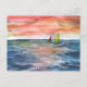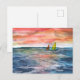 Vibrant Sunset Sailing Watercolor Art Holiday Postcard