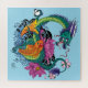 Vibrant Teal Oriental Koi Dragon Lotus Flower Jigsaw Puzzle